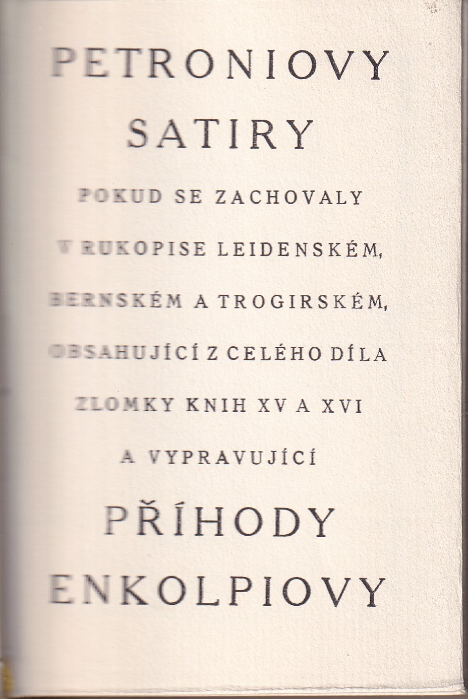 pokud se zachovaly v rukopise leidenském, bernském a trogirském obsahující z celého díla zlomky knih XV. a XVI. a vypravující příhody Enkolpiovy / [přeložil Karel Hrdina]