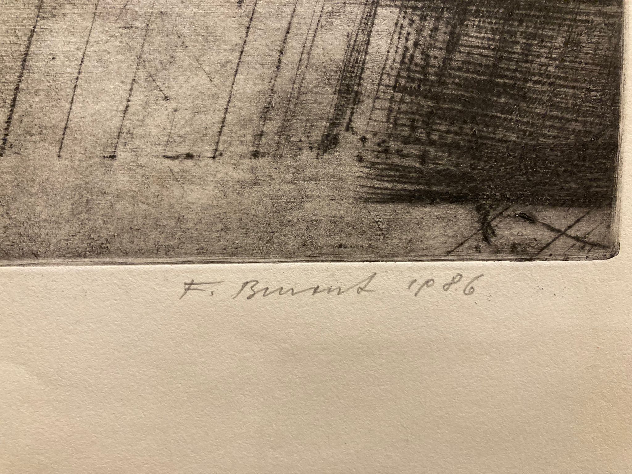 Suchá jehla, rozměry tisk. plochy 43,5 x 57 cm. Signováno a číslováno autorem, datováno 1986. Na ...