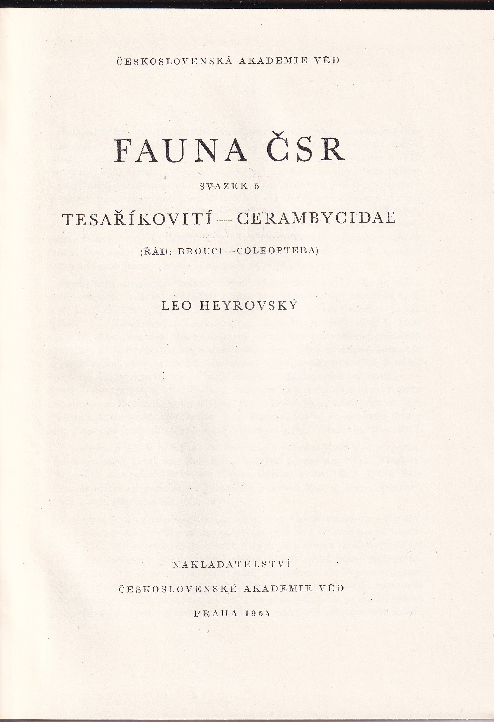 Fauna ČSR Sv. 5 Tesaříkovití - Cerambycidae Leo Heyrovský